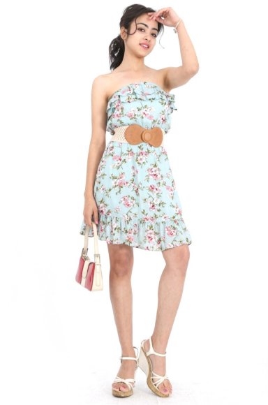 Leah Floral dress in baby blue