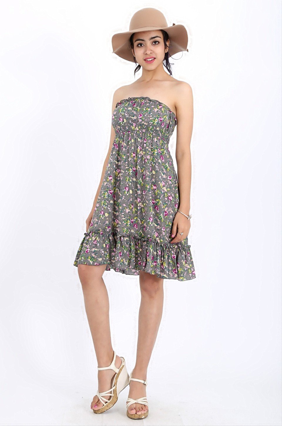 - Elasticized neckline and smock waist